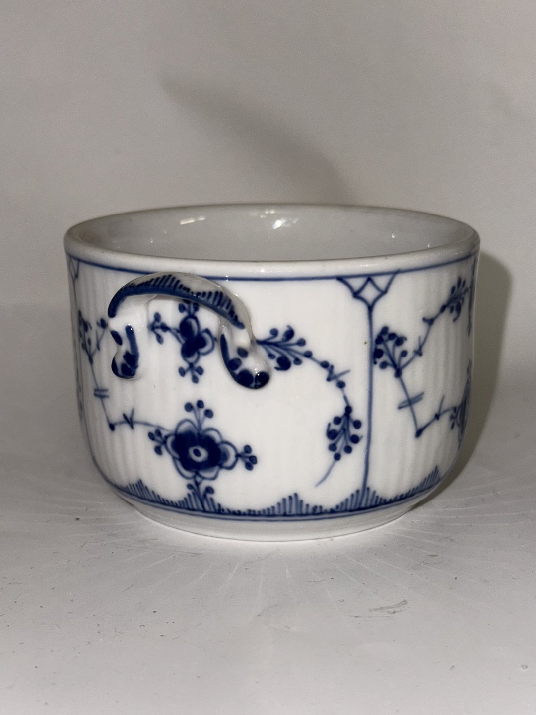 Royal Copenhagen: Sjælden sukkerskål i musselmalet porcelæn