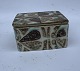 Nils Thorsson: Kvadratisk lågskål i fajance fra Royal Copenhagen designet af den svenske designer. Fremstår i perfekt stand. Mål: H. 4,2 cm samt 7,8 x 7,8 cm