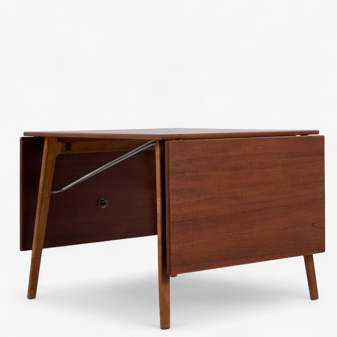 Spisebord med stel i massiv egetræ og top i teak med to tillægsplader.