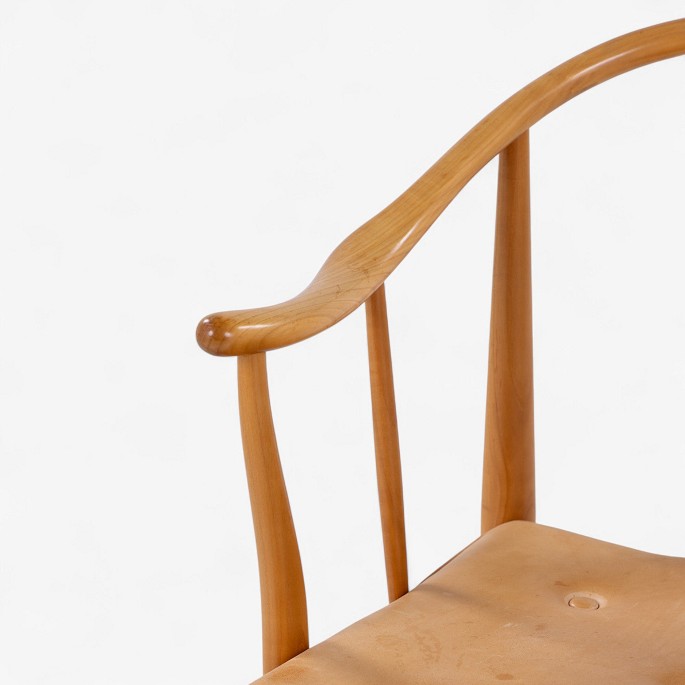 FH 4283 - Kinastol i kirsebær med hynde i patineret naturlæder. Mærket fra producent.