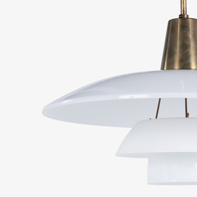 PH 4/3 - Pendant lamp with white glass shades and brass handle.