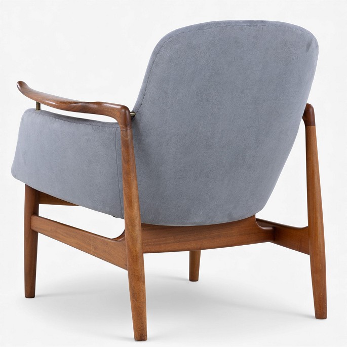 NV 53 - Lænestol i gråt 'Alcantara'-stof med stel i patineret valnød.
