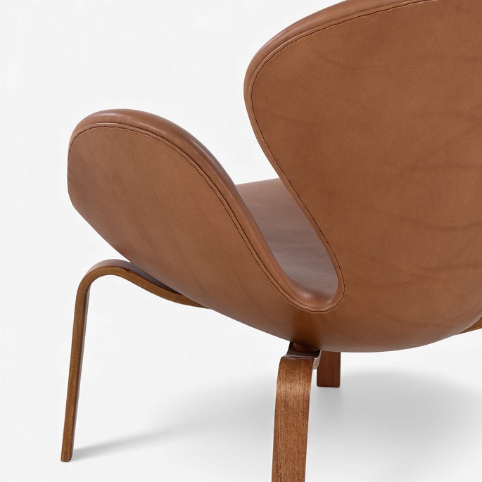 AJ 4325 - 'The Swan' armchair in newer cognac-colored aniline leather with wooden frame. Manufacturer's stamp.