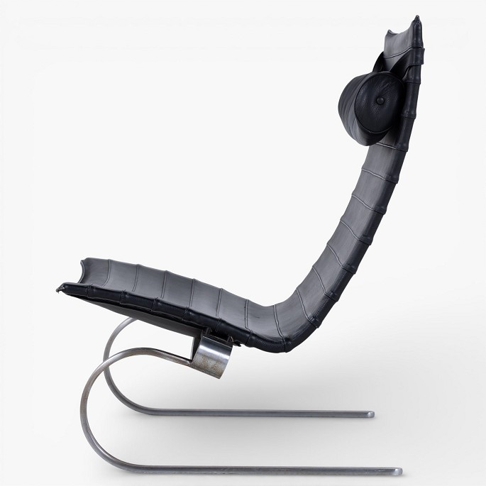 PK 20 - Armchair in original black leather with neck cushion and spring steel frame. Designed in 1968.