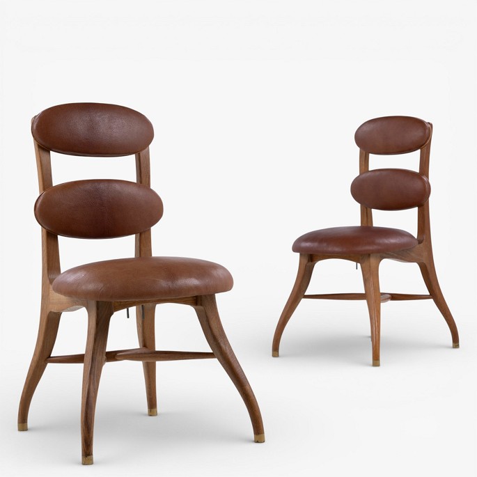 'Musikerstol' med stel i patineret egetræ og justerbart sæde og ryg i patineret nigerskind. Formgivet i 1942.
