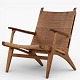 CH 27 - Armchair in patinated oak and wicker. Designed in 1949.