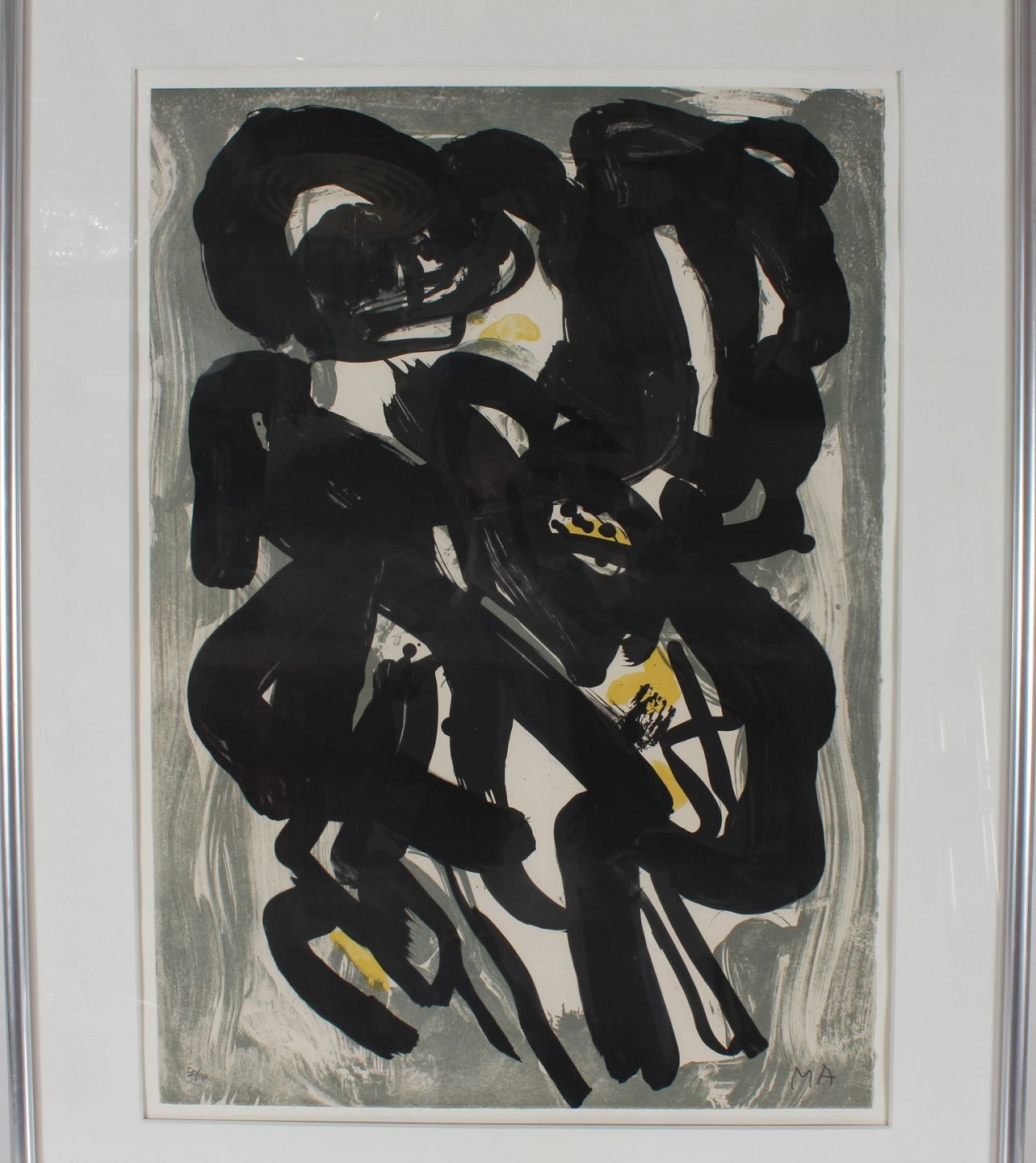 Mogens Andersen (1916-2003) Abstract composition, color lithography 50/90 in wooden silver color frame Sign. MA Height 99/76.5 cm Width 78/56.5 cm Nice vintage condition