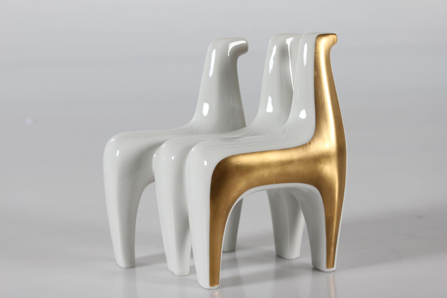 Bing & Grøndahl figurine Modern porcelain figurine of three horses no. 4207 designed by Agnethe Jørgensen With stamp from the period after 1970 Height 14.5 cm Factory 1 no chips, cracks, repair or crazing