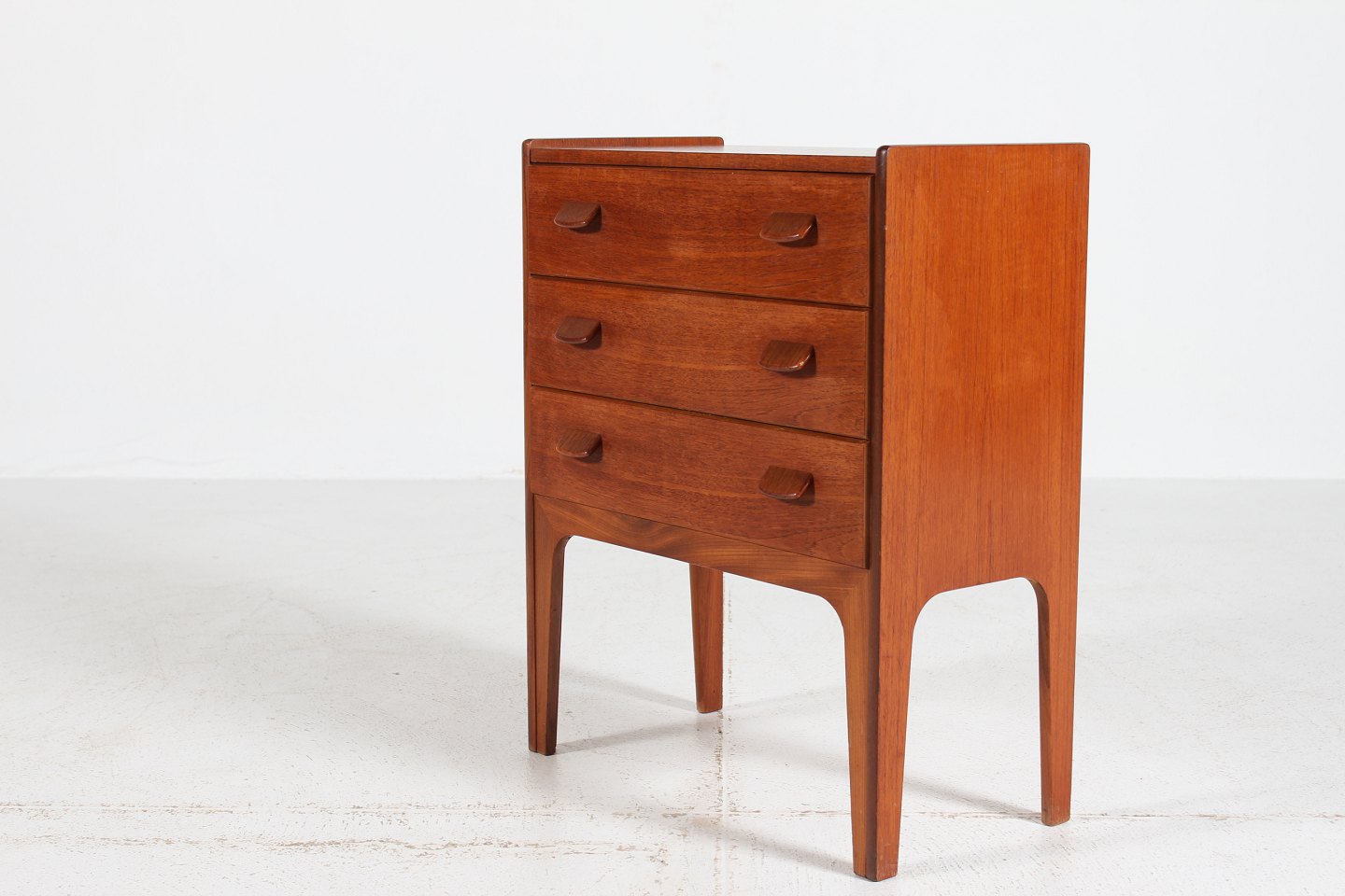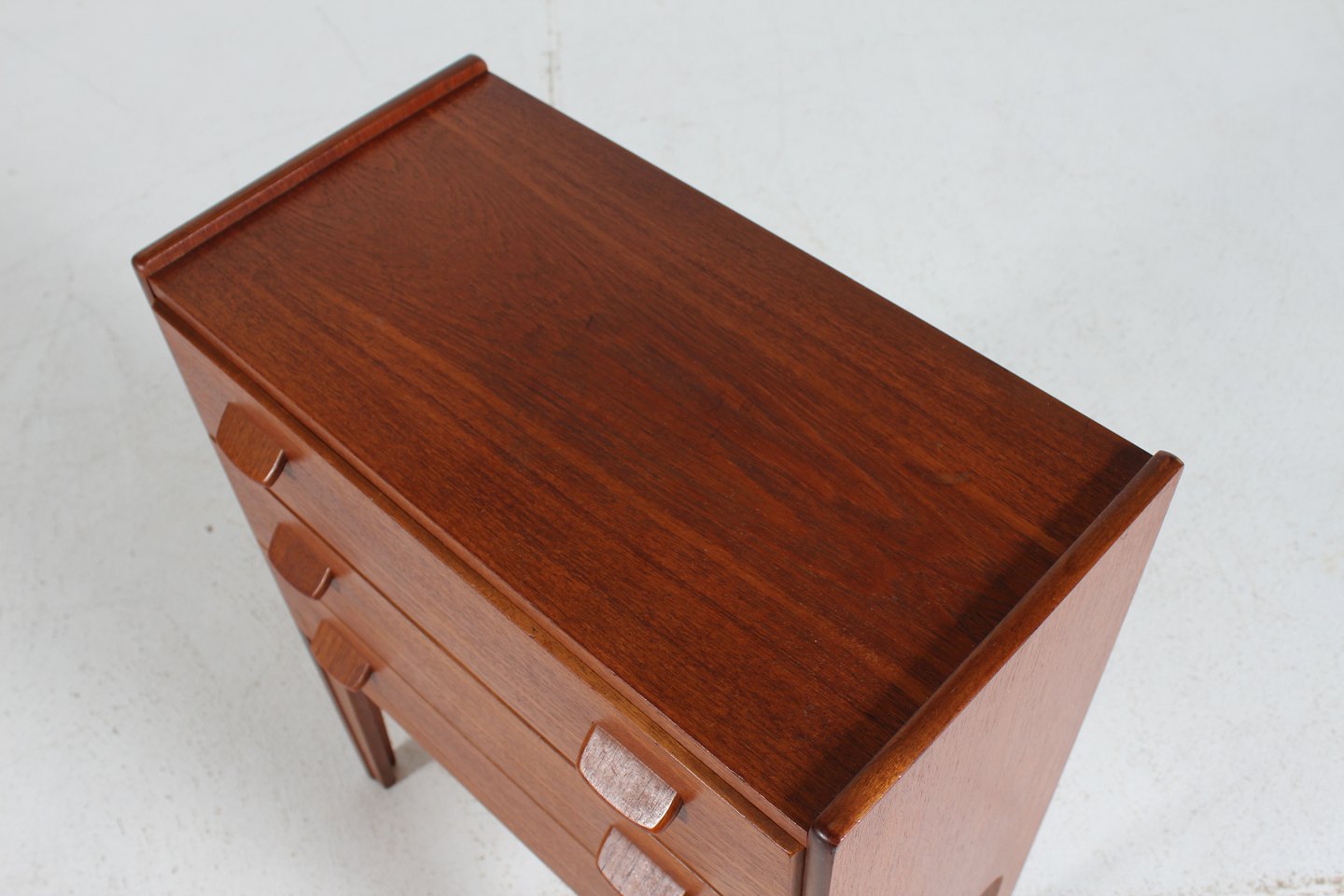 Danish Modern Dresser with 3 drawers made of teak. Most likely designed by Poul Volther Height 68 cm Length 55 cm Depth 30 cm Danish Manufacturer Good vintage condition - spots and scratches may be present