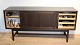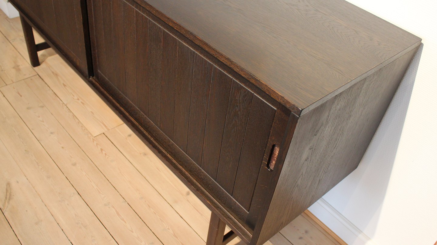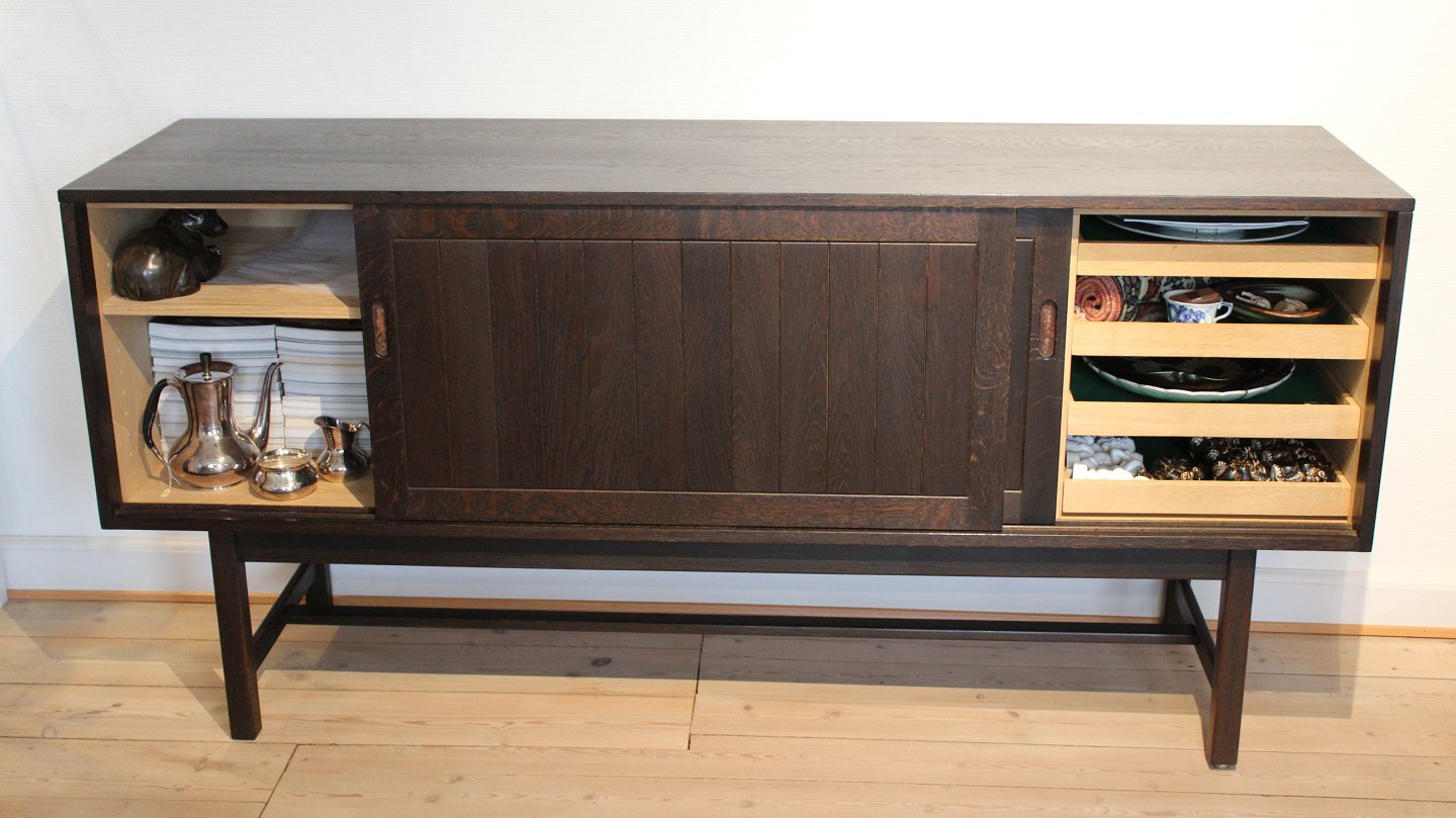 2 skydelåger med læderhåndtagsbunde og 4 skuffer
