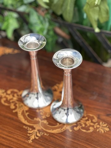Flot par minimalistiske lysestager i massivt 830 sølv stemplet Hejl , Fredericia . Dansk design ca. 1960-1970