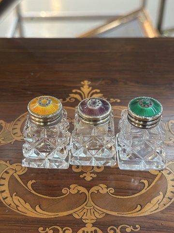 Kristallsalzstreuer, Sterlingsilber mit Emaille, Art Deco, 1920er Jahre, schöner und guter Zustand