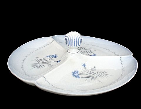 Bing & Grøndahl, Demeter blå (Kornblomst). Lysestage. Nr. 249. Højde 4 cm. Diameter 11,5 cm. Pris: 200 kr. stk. Lager: 2