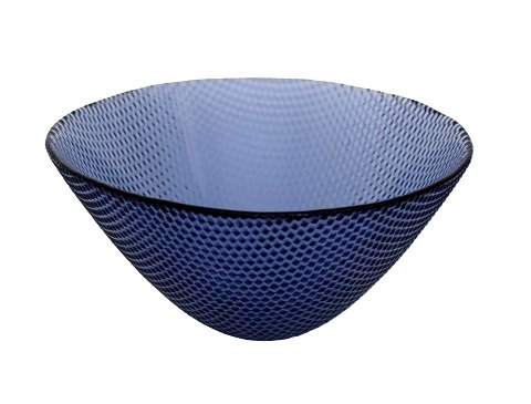 Holmegaard, Trigona skål i mørk grå/olivengrønt glas. Designet af Torben Jørgensen i 1988 for Royal Copenhagen. Centrifugeret serie, glat indre og kube mønstret yderside. Den olivengrønne farve er ikke ramt rigtigt på fotos, hvor den virker nærmest sortgrå. Trigona serien er også produceret i klar, lilla og blåt glas. Diameter 25 cm. Højde 12,5 cm. Pris: 250 kr. stk. Lager: 1