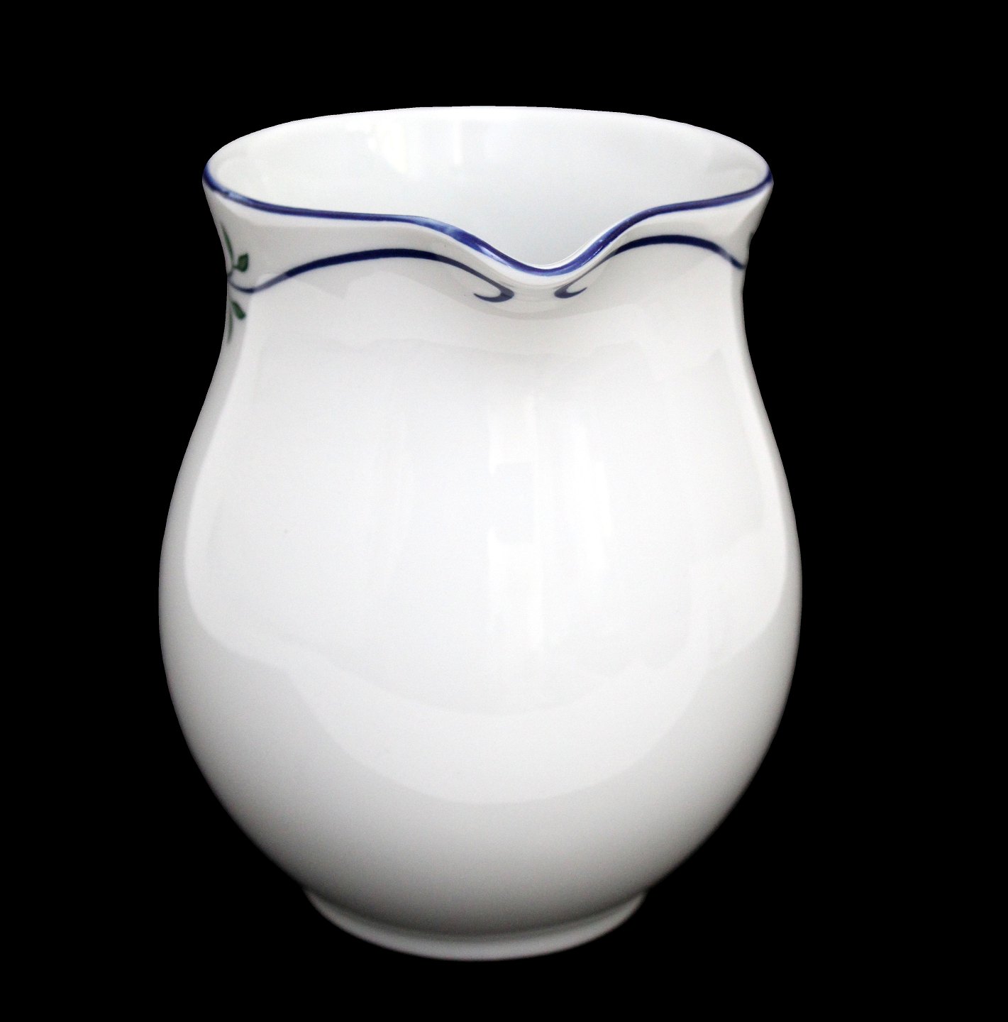 Rørstrand, Sundborn, dishwasher safe porcelæn. Dekoreret af Pia Rönndahl. Fra det oprindelige Rørstrand, da de stadig producerede i Sverige. Mælkekande. Højde 14 cm. Øverste diameter 10 cm. Længde 16 cm. Pris: 250 kr. stk. Lager: 1