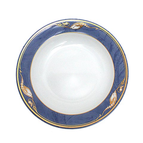 Royal Copenhagen, Blå Magnolia. Dækketallerken eller megastor middagstallerken. Blå marmoreret bort dekoreret med gylden blomsterknop. Designet af Flemming Eskildsen. Nr. 631. Diameter 31,5 cm. I. sortering. Flot stand. Pris: 300 kr. stk. Lager: 16