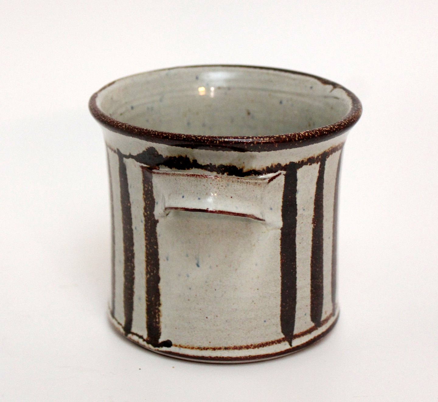 Svend Løwe, København, eget værksted grundlagt i 1954. Krukke eller urtepotteskjuler med ører. Højde 9,5 cm. Diameter 10 cm. Signeret Løwe Danmark. Pris: 250 kr.