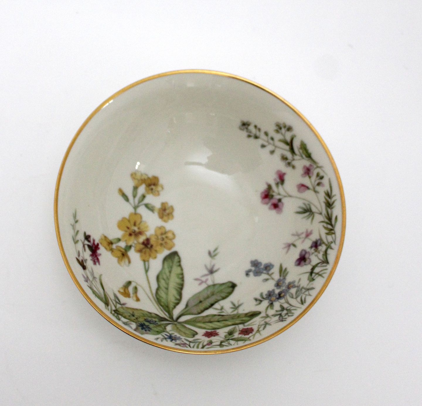 Krautheim, Selb Bavaria, Germany, Danmarks Flora cremet stel med guldkanter motiv Danmarks flora flere forskellige motiver. Lille skål. Diameter 15,5 cm. Højde 5 cm. Pris: SOLGT