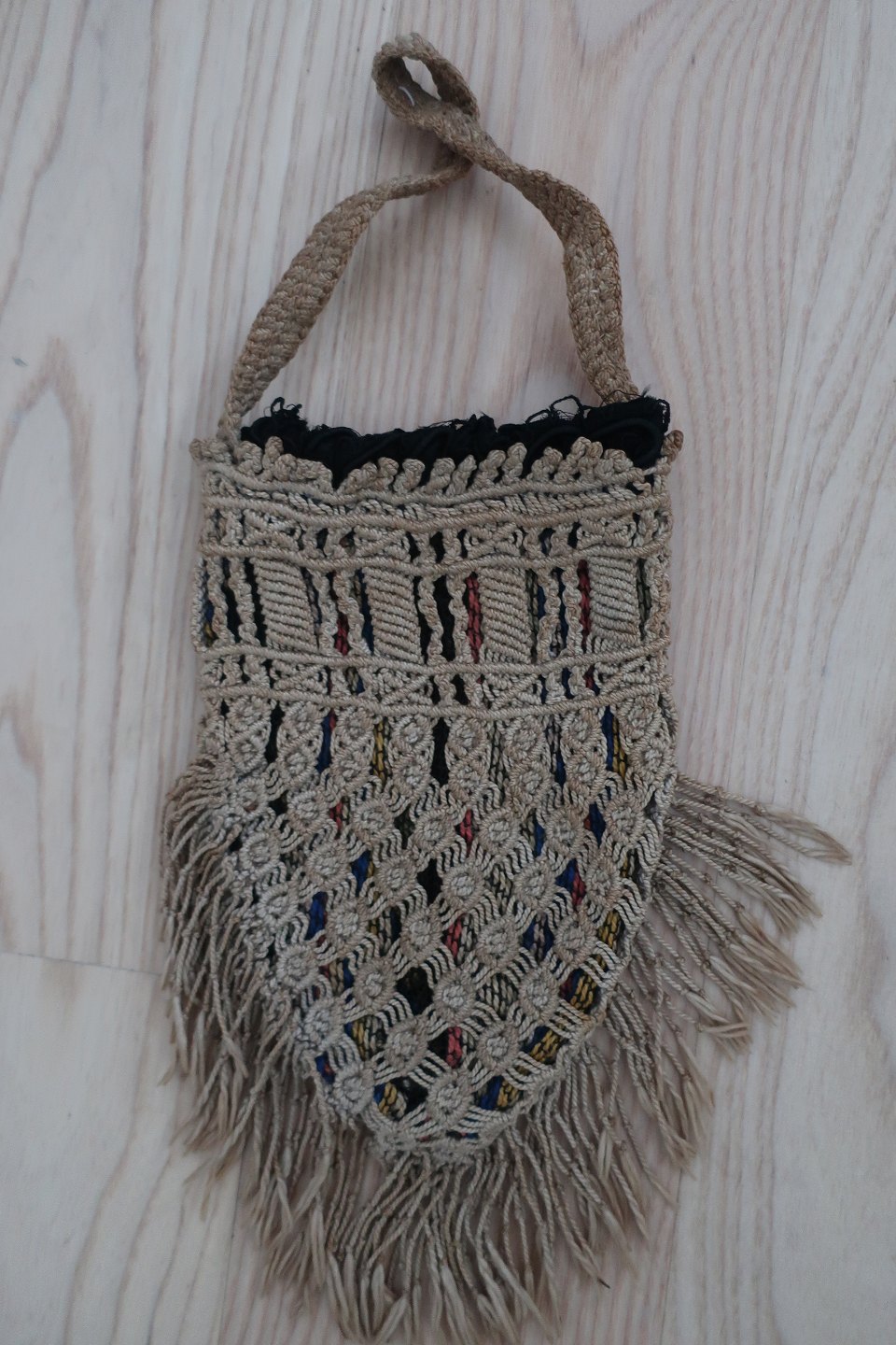 Antik smuk gammel håndtaske håndlavet af hør, hvor hørfarven er bevaret