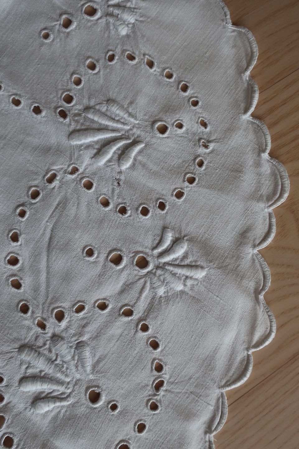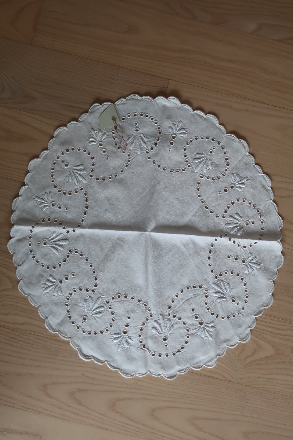 An altes Tischtuch Mit Stickerei in Weiss, - handgemacht Durch: 52cm In gutem Stande Warennr.: DG117-4-4168
