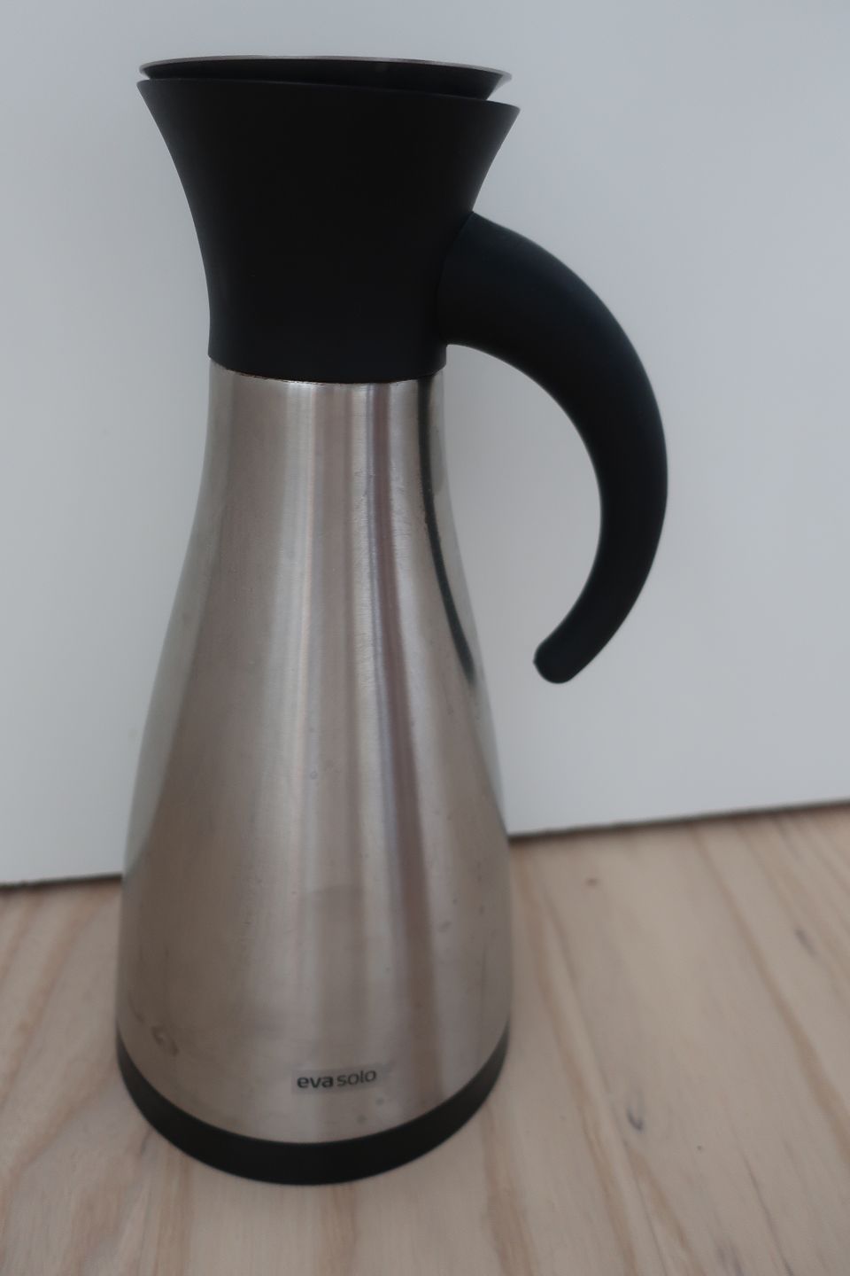 Termokande Eva Solo 1,1L H: 28cm Rustfrit stål både udvendig og indvendig Drypfri og brudsikker (iflg. producenten) Let brugt, men i flot stand Varenr.: KL1006