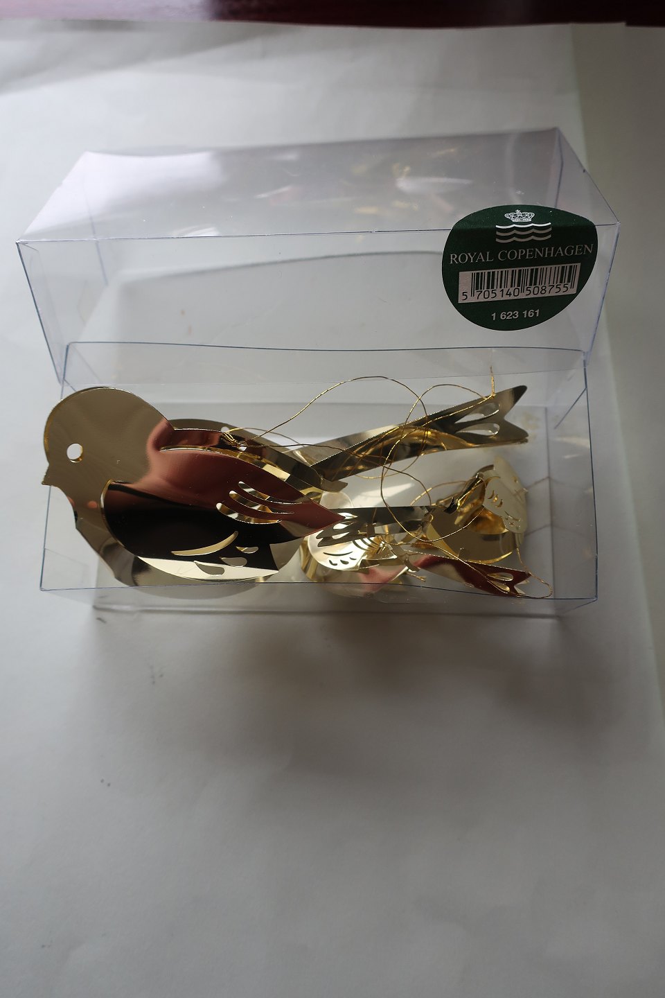"Gold" birds as Christmas dekorations From Royal Copenhagen (RC) In the original packing In a very good condition Articleno.: KL1005